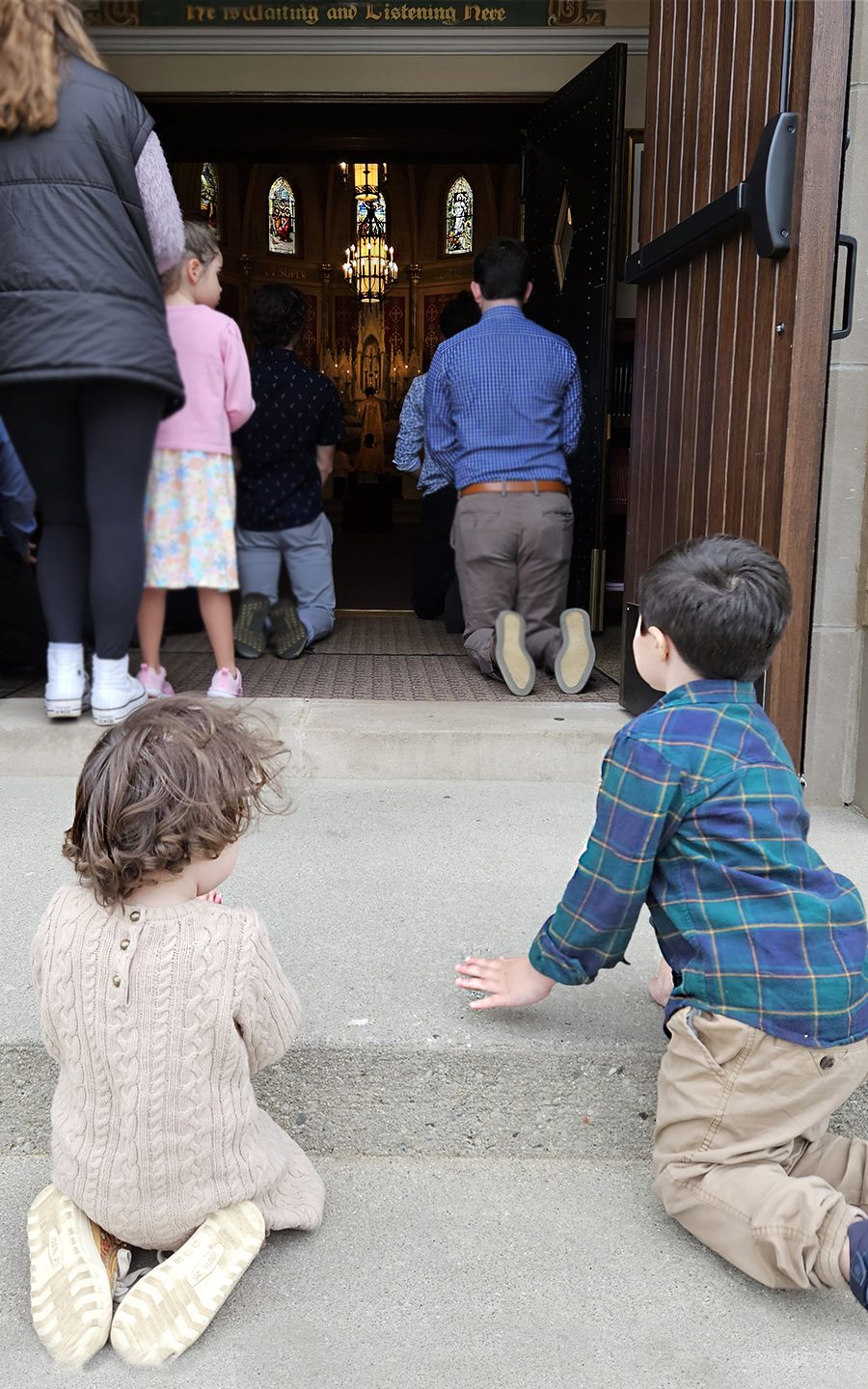 - We made it to Mass and all of us even prayed (see photo below).